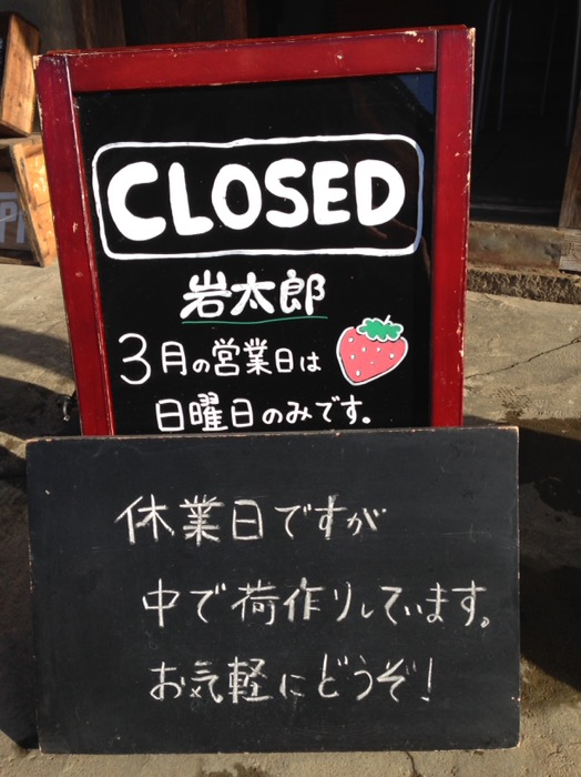“岩太郎”の3月の営業日ですが、日曜日のみとさせて頂きます。