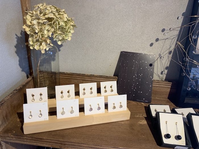 店内、サトウカヨさんのガラスの作品がキラキラ🌟